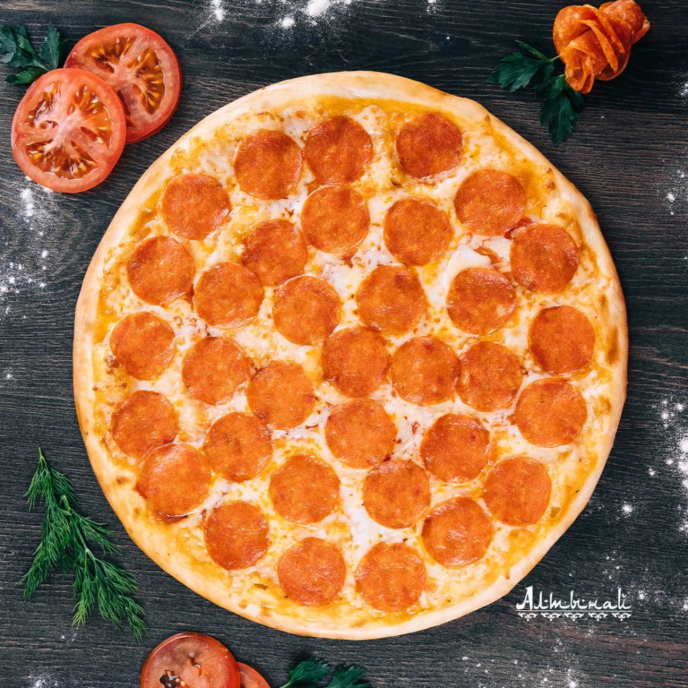 Фирменный соус, помидоры, сыр для пиццы, колбаски Пепперони